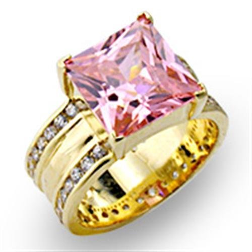 Jättesnygg guldpläterad ring med vackra glittrande cubic zirconia och stor rosa Prinsessa cz sten.