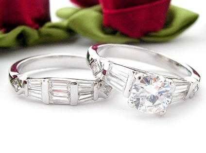Vitguldpläterad ringset med gnistrande cubic zirconia.